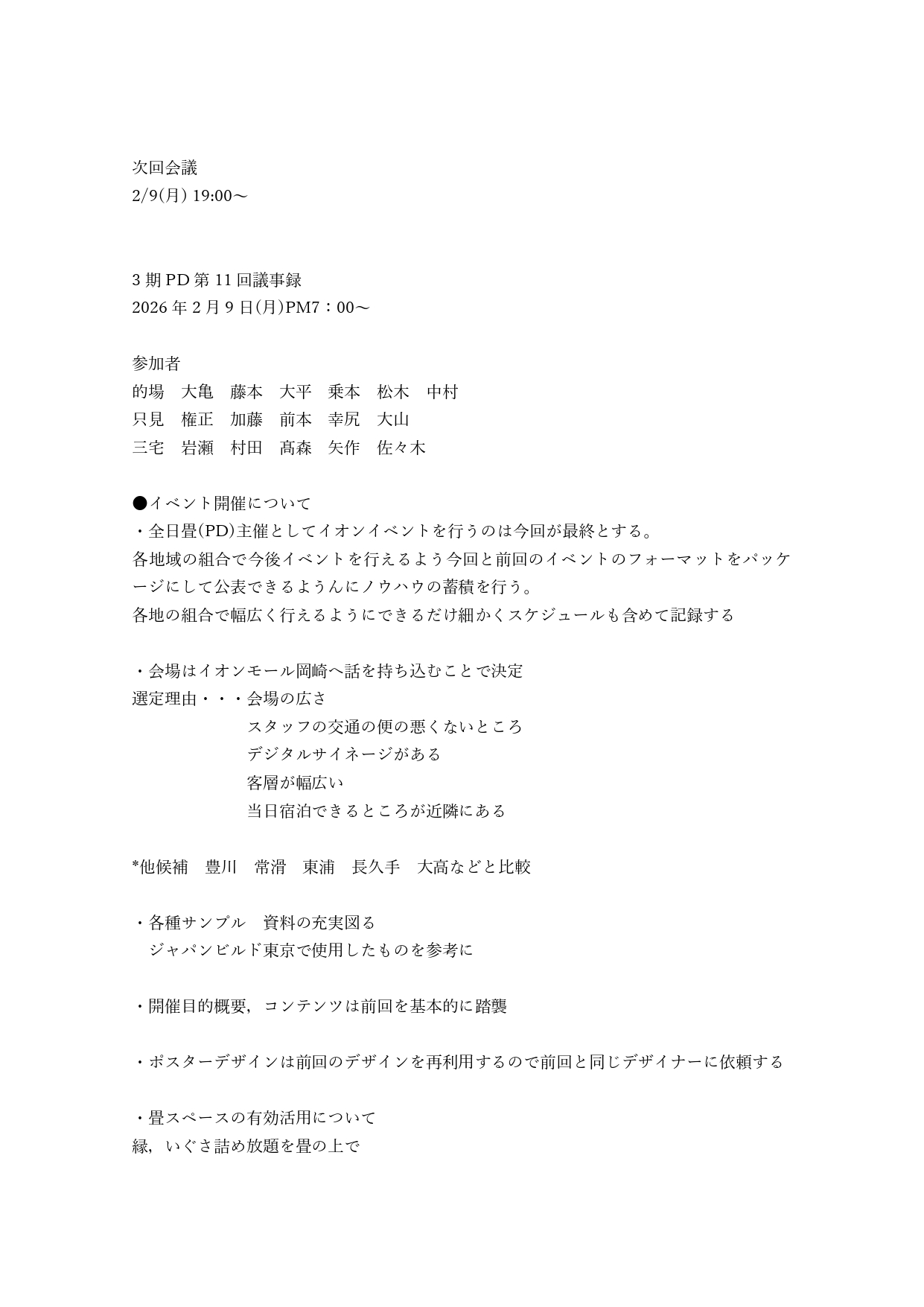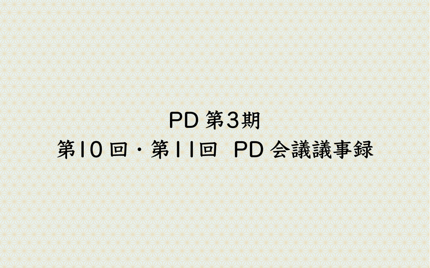 PD第3期 第10回・第11回 PD会議議事録 PD会議議事録 2026.01.13 2026年1月13日(火)・2026年2月9日(月) PD第3期 第10回・第11回 PD会議議事録 資料は下記よりダウンロードいただけます。(PDF) PD第3期 第10回・11回PD会議議事録-PDF