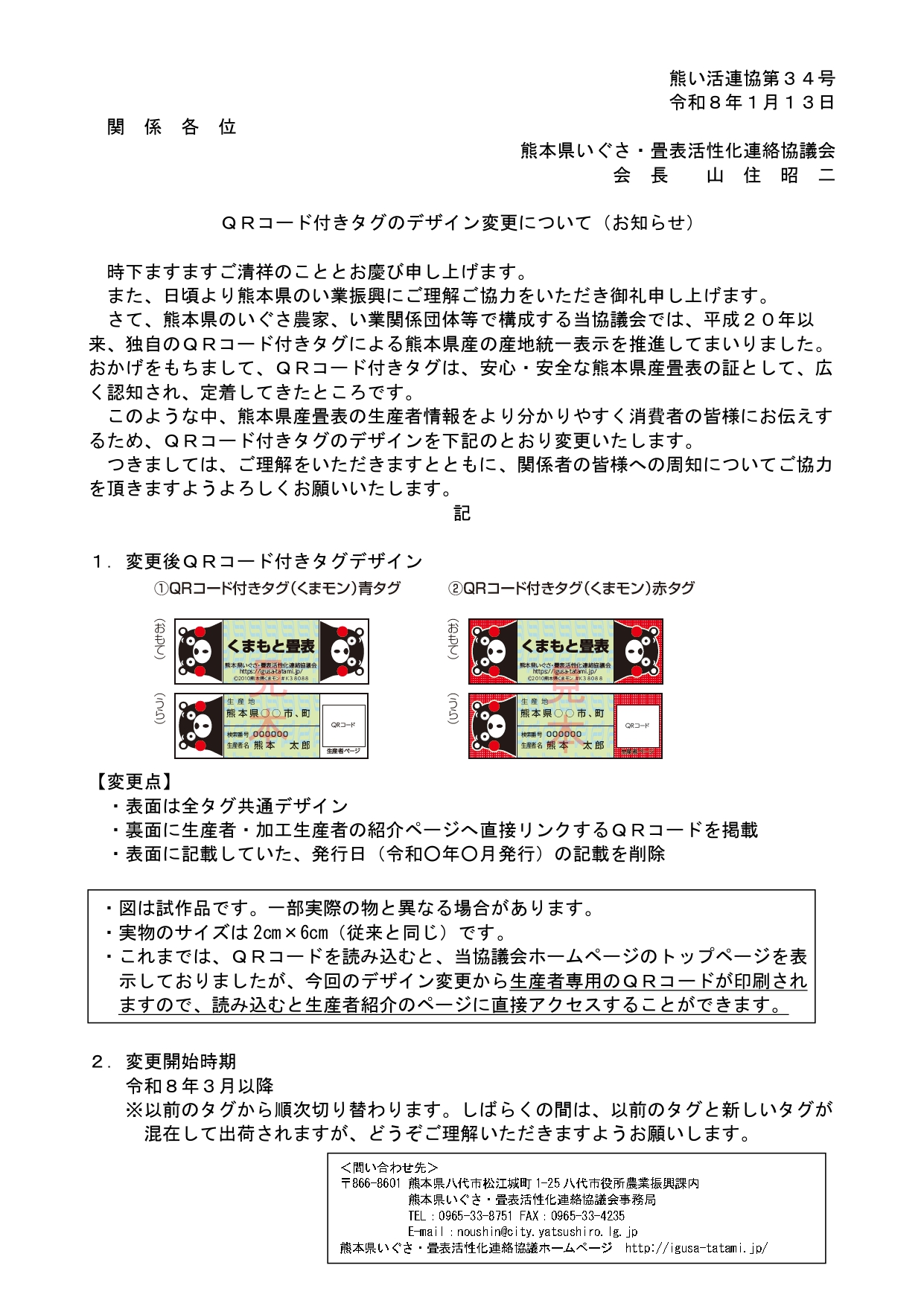 QRコードくまモン熊本県いぐさ・畳表活性化連絡協議会